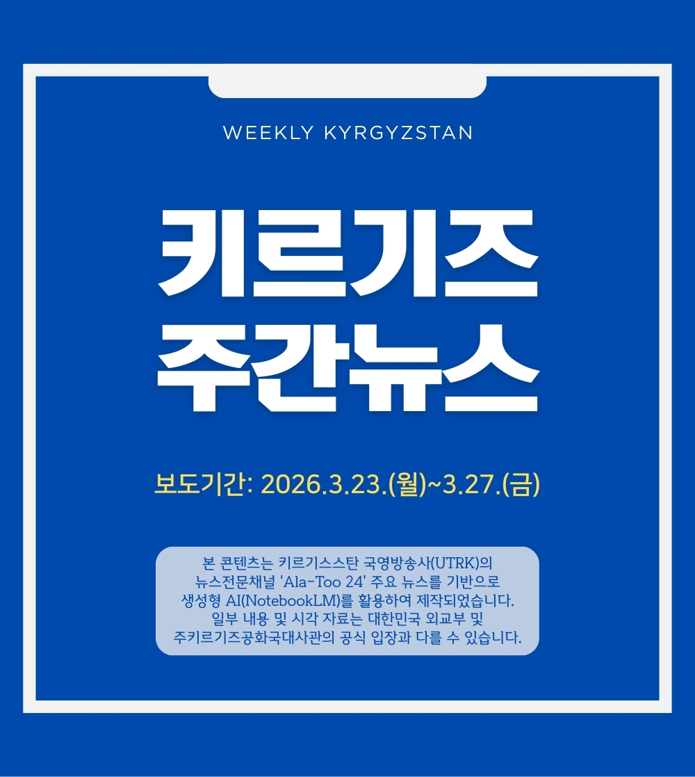 자료출처: Ala-Too 24 (UTRK) 2026년_3월_23일_뉴스, 2026년_3월_24일_뉴스, 2026년_3월_25일_뉴스, 2026년_3월_26일_뉴스, 2026년_3월_27일_뉴스
